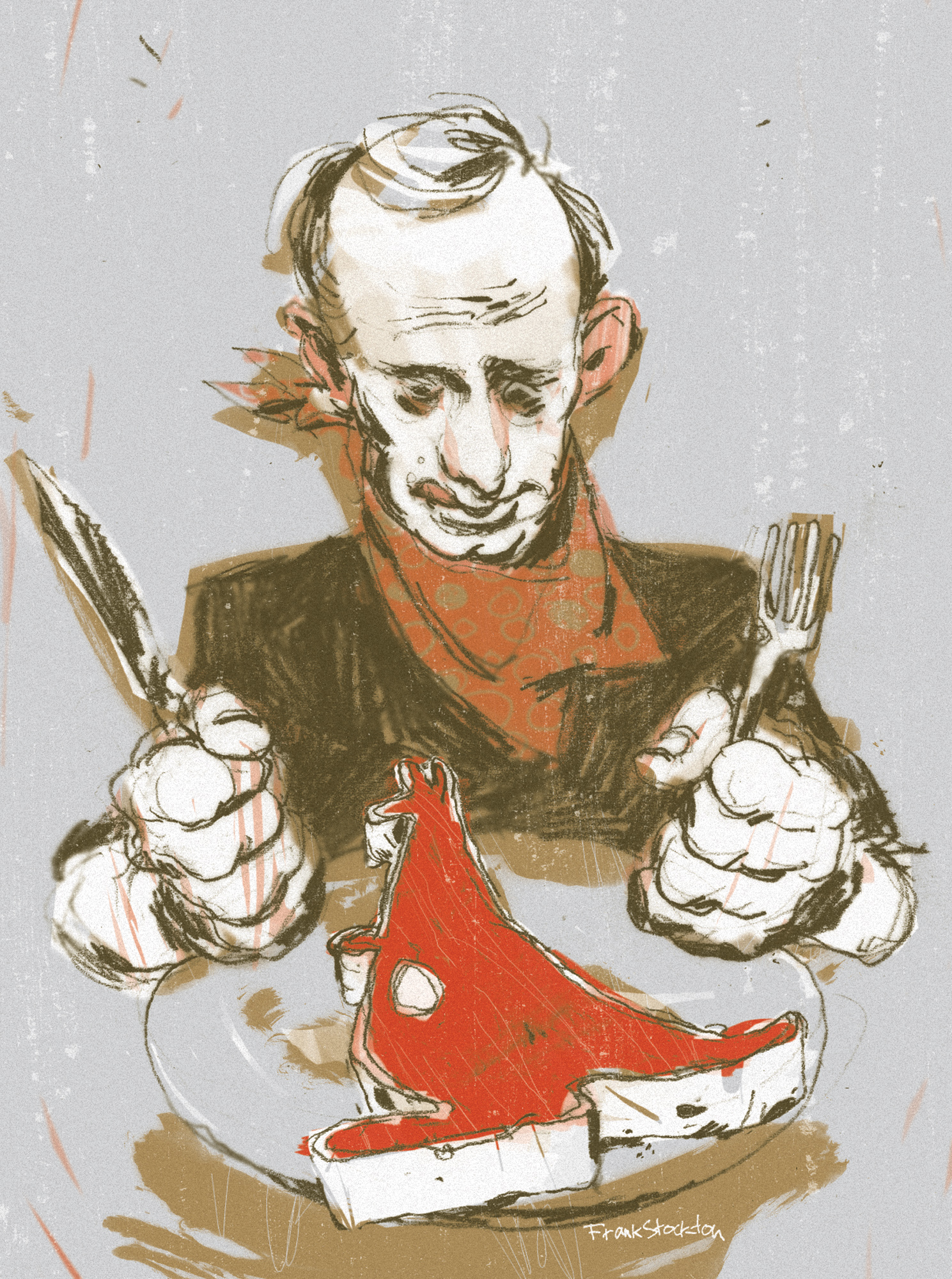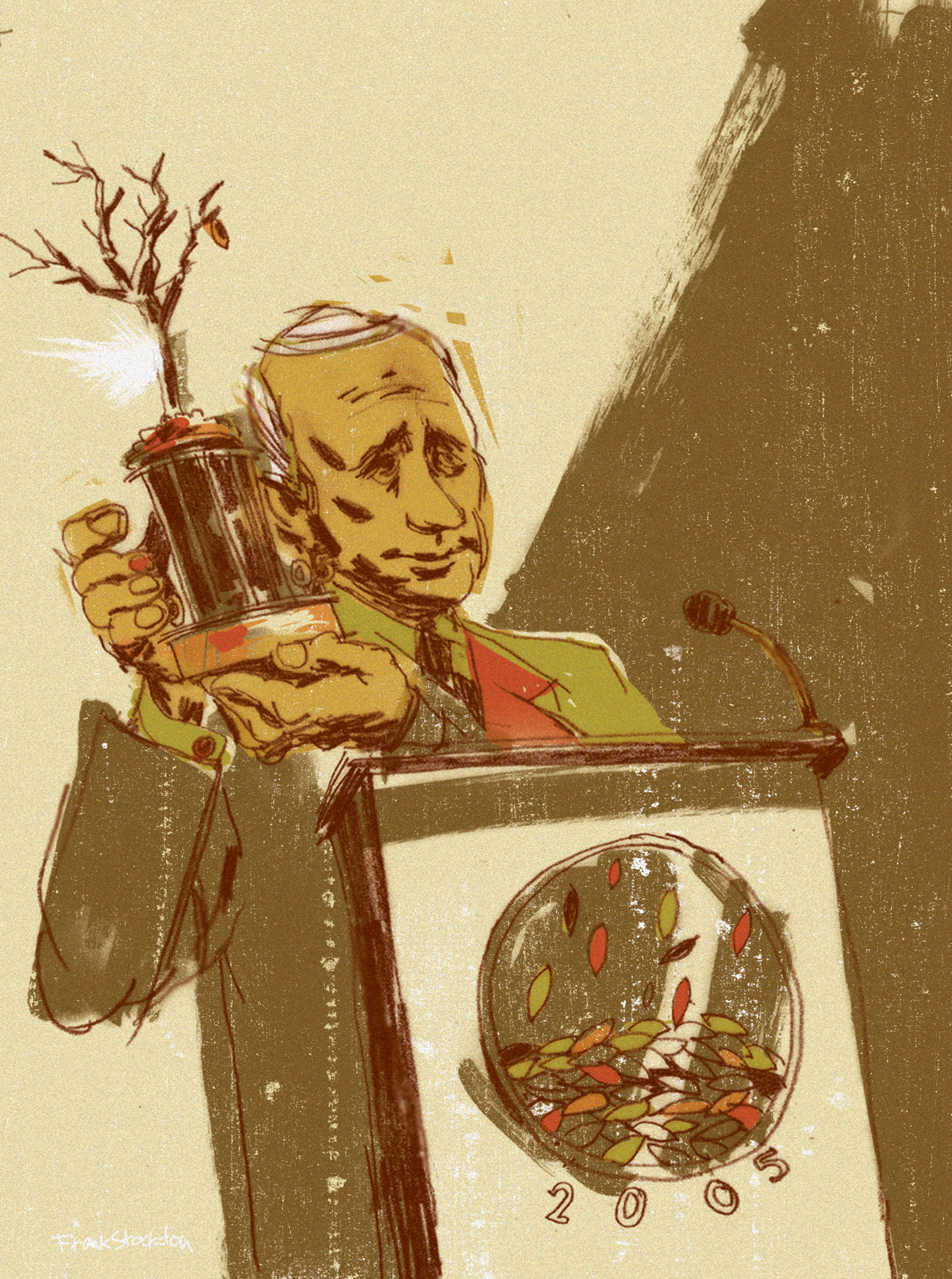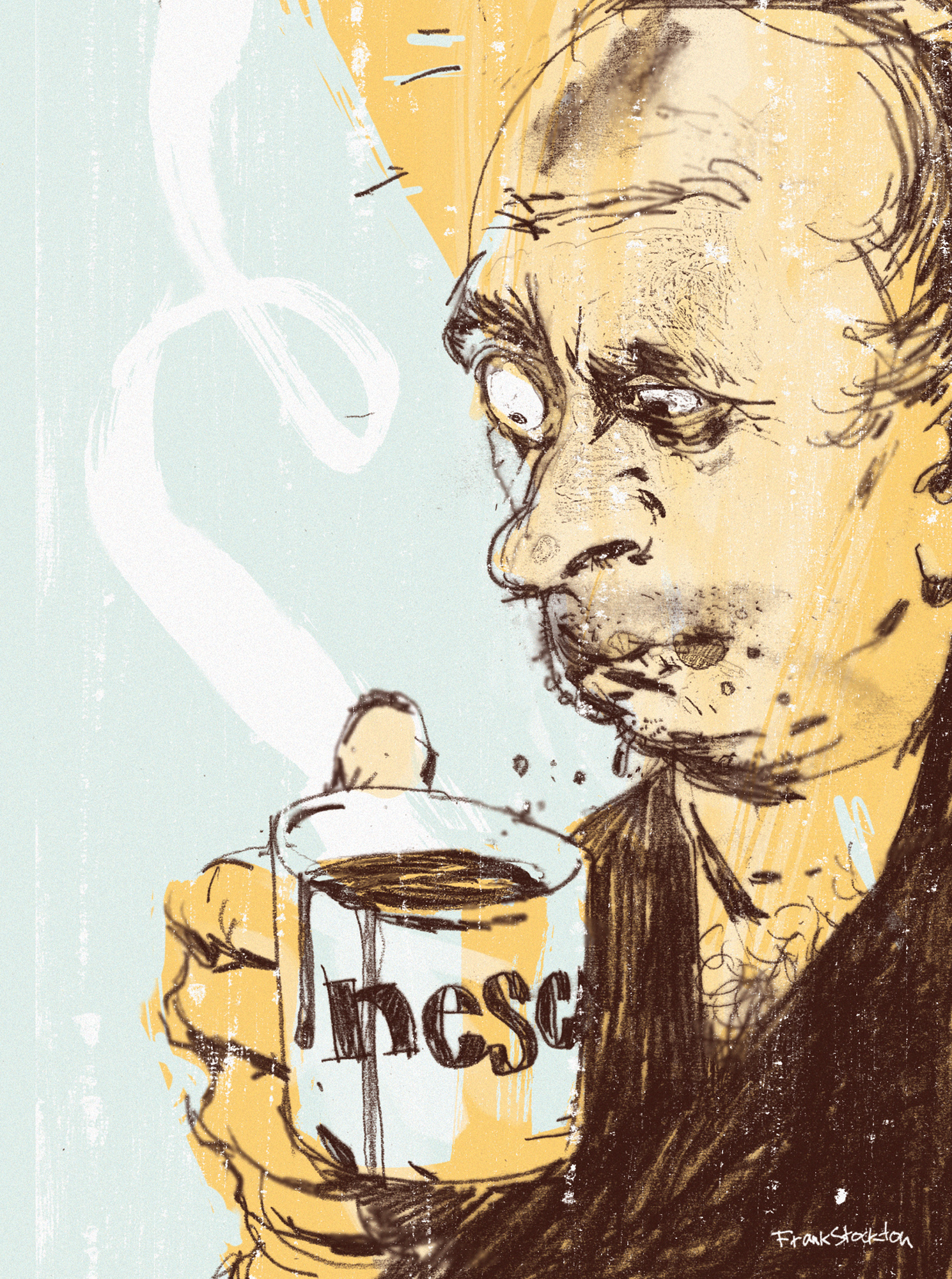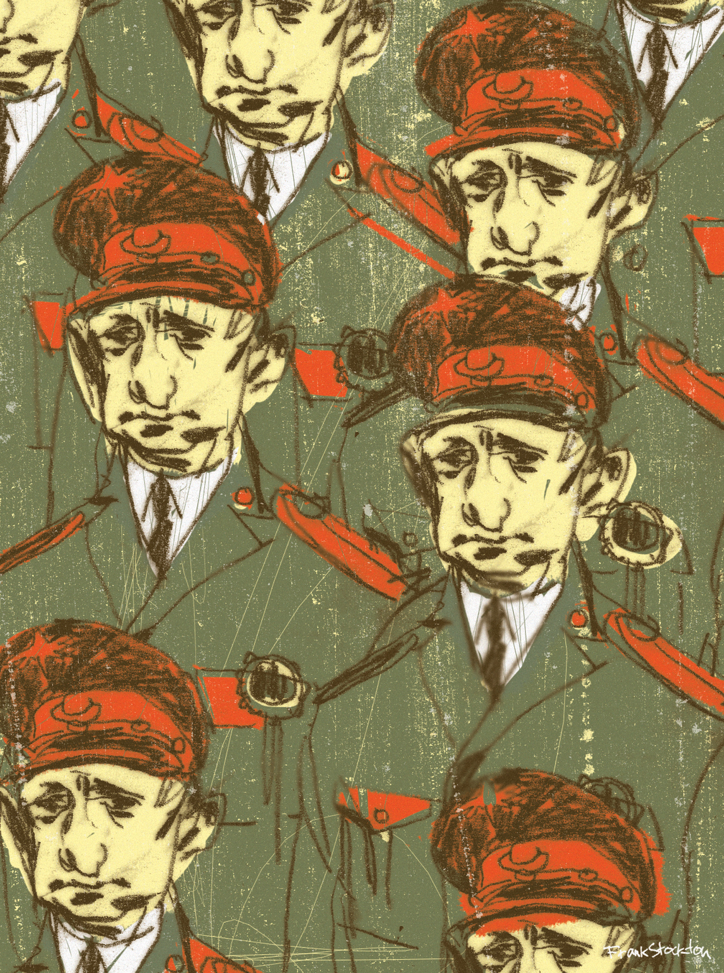 From the paragraph you sent me it seems that the writer is using two examples out of a series of 30 to make some point that’s not in the spirit or original intent of the pieces. It appears to imply that I was making some sort of political statement about Putin. As an illustrator, I am hired to interpret the text given and present it back to the publisher in a way that fulfills their needs, rarely if ever to present original views or opinions on issues. Pinpointing two images out of thirty is like showing two panels of a 30 panel comic strip and letting them imply a completely different story than may take place in the entire piece.