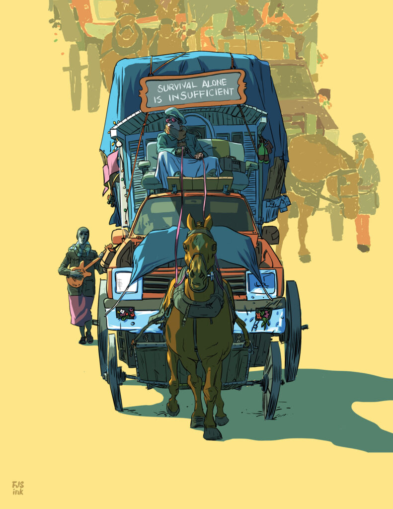 Much of the conversation touches on a tension I’ve been navigating for years: illustration and contemporary painting are often defined in opposition to simplified versions of each other, even though both demand a distinct point of view.